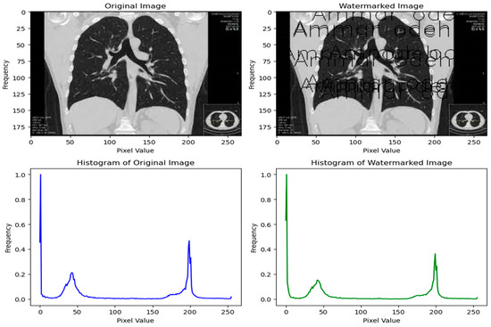 Figure 2 presents a comparative analysis of original and watermarked images and their respective histograms. A compelling advantage of our algorithm becomes evident when observing the histograms of these images. The generated histograms reveal a remarkably subtle difference, suggesting that the watermarking process minimally impacts the image’s overall distribution of pixel intensities. This slight dissimilarity implies that visually distinguishing between the original and watermarked images would be challenging for the human eye.