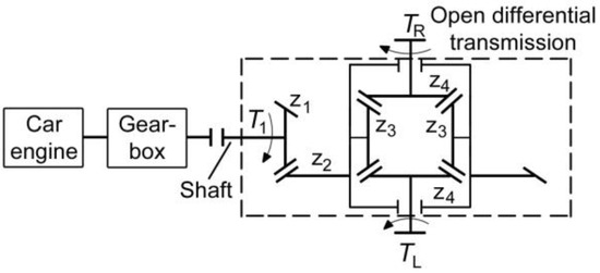 Differential transmission of power and motion is a technical system that uses gears to transmit torque and rotation. With its application in cars, torque and rotation are supplied to the input shaft, which is then taken to the left and right drive wheels [1,2]. The need for different amounts of angular velocities (so that the vehicle does not overturn during non-rectilinear movement) and torques of the drive wheels arises during the movement of the vehicle in a turn, on uneven ground and with different wheel diameters. The latter is a consequence of the appearance of a pressure difference in the tires. With regard to the previously mentioned functional requirements, different design versions of differential transmissions are installed in road vehicles.
