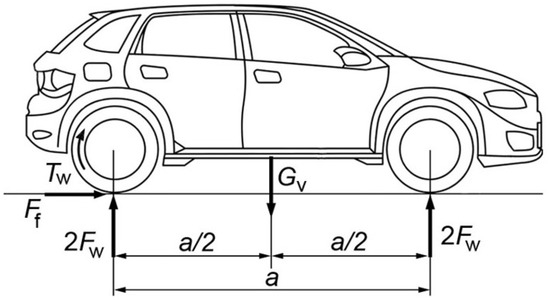 where Gv is the vehicle weight force calculated as a product of the maximum vehicle mass (Table 1) and the acceleration of the earth’s gravity (g = 9.81 m/s2). The calculated amount of the reaction force is presented in Table 2.