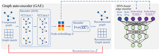 GAE utilizes a two-layer graph convolutional network (GCN) [42] as encoder to form the node embeddings of a graph. Formally, the node embeddings are denoted by where denotes the two-layer graph convolutional network. The two-layer GCN is defined as