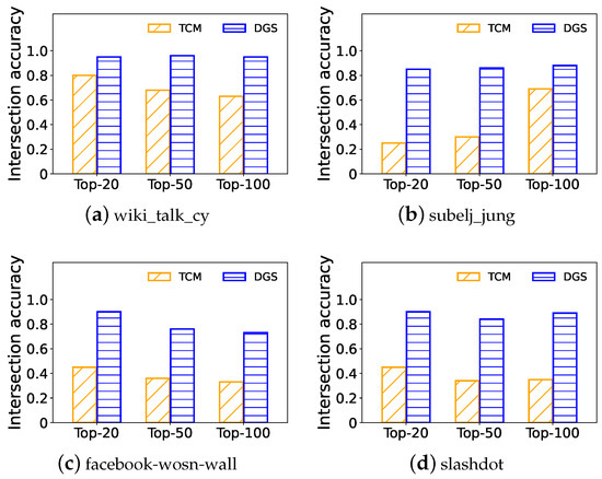Intersection accuracy [1] measures the accuracy of the top-k heavy nodes reported by a graph sketch. Supposing that X denotes the set of reported top-k heavy nodes, and Y denotes the set of ground truth top-k heavy nodes. The intersection accuracy (IA) is formulated as follows: