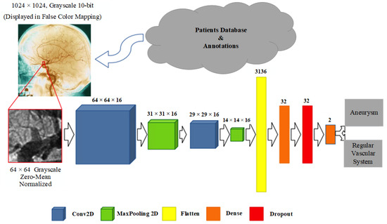 The 2D convolutional neural networks (2DCNNs) are a type of deep learning architecture (see Figure 1) commonly used for image classification and detection tasks, including brain aneurysm detection. The network has multiple layers, including convolutional, pooling, and fully connected layers [15].