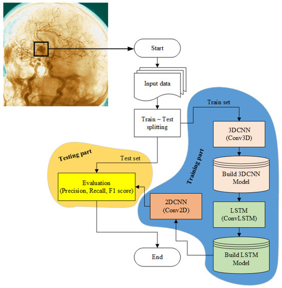 Our research aims to investigate the usage of deep neural networks (DNNs) for aneurysm detection and compare their performance to existing detection methods. We will also explore different network architectures of DNN and training strategies to optimize the accuracy of the models. Overall, our goal is to develop a more accurate and efficient method for detecting brain aneurysms, which can ultimately improve patient outcomes. We focused on a 2D convolutional neural network model and a combination of 3DCNN and LSTM. Further, in this section, we will describe the entire process, including the dataset, annotation, signal pre-processing, and model design.