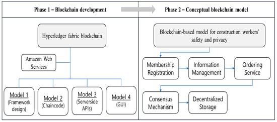 This study was conducted in two phases. Phase 1 involved the experimental design of the proposed blockchain system and the storage of the workers’ hypothetical biodata and safety data. Phase 1 was carried out in 4 modules. These included the implementation of Module 1, which focused on developing the blockchain using the Hyperledger Fabric platform on the AWS cloud provider. Module 2 encompassed the development of the chaincode. Module 3 involved the creation of a server-side Application Programming Interface (API), which allows client applications to send requests to the server and receive responses. Finally, Module 4 entailed integrating the blockchain system onto a third-party graphic user interface (GUI), thus enabling easy visualization of the data. In phase 2, the results from the experimental design and management of the blockchain led to the development of a conceptual information management model for enhancing the privacy and safety of construction workers’ personal information and its practical implementation to validate its usability and benefits for the construction industry.