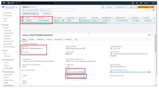 An AWS infrastructure was created to establish a secure and isolated environment for the blockchain network. This involved setting up an IAM account for access control and provisioning EC2 instances with the necessary computing power and storage. Security measures, including firewalls, access controls, and a VPC (Figure 4), were implemented to prevent unauthorized access and ensure data privacy. Subnets, route tables, and network ACLs were configured within the VPC for traffic control. Network and security groups were employed to manage communication rules, thus adding an extra layer of security. Data protection was ensured through encryption methods like AWS Key Management Service (KMS). Overall, this setup laid a strong foundation for the blockchain system, guaranteeing both network security and efficient operation.