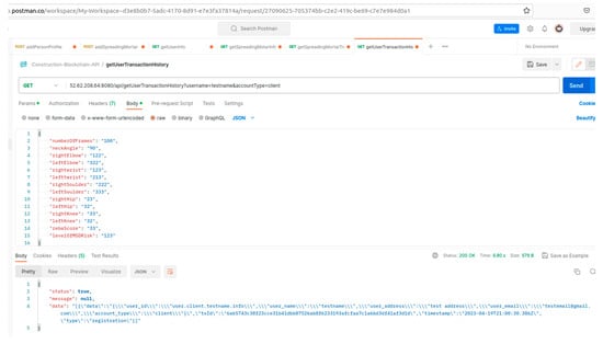 Integration Layer: The integration layer facilitated the integration of the blockchain network with external systems and services. It included APIs, which were tested successfully in Postman (an API platform), a middleware, and connectors that enabled communication and data exchange between the blockchain network and other external applications. This layer ensured seamless integration and interoperability between the blockchain network and existing infrastructure.