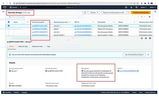 To ensure secure storage and management of blockchain data, the LevelDB storage library was integrated with Amazon Web Services (AWS), specifically utilizing Amazon Relational Database Service (RDS). This integration provided a reliable solution for storing and organizing construction worker information, thus ensuring data integrity and confidentiality. RDS, a scalable relational database service, handled essential database management tasks, such as provisioning, scaling, backups, and recovery. By leveraging RDS, construction workers’ biodata and safety data were securely stored, while also benefiting from RDS’s built-in security capabilities to comply with industry regulations, such as the General Data Protection Regulation (GDPR).