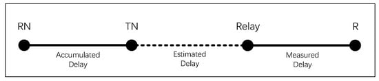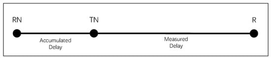 To commence the process, each node will periodically transmit announcement messages to its adjacent nodes. These messages are designed explicitly for one-hop transmission and contain delay information, thereby avoiding excessive propagation throughout the network. This approach can seamlessly integrate with existing distributed routing protocols such as Open Shortest Path First (OSPF). The routing protocol transmits hello packets with timestamps at intervals (5 s). Upon receiving a hello packet, the node computes the transmission delay by comparing the timestamp enclosed in the packet with the local time.