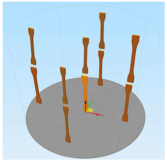 According to the study of Basgul et al. [10], only one sample per build was printed. Therefore, the cooling time of a layer was decreased compared to printing more samples per platform, and the interlayer adhesion was improved, which would significantly affect ultimate strength [10].
