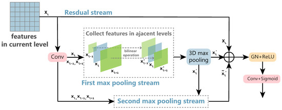where , and denote the above-mentioned three streams, respectively, which are combined by an element-wise addition and several operations (i.e., Group Normalization, ReLU function and a convolutional layer, and the Sigmoid function). Next, we will introduce three streams in detail.