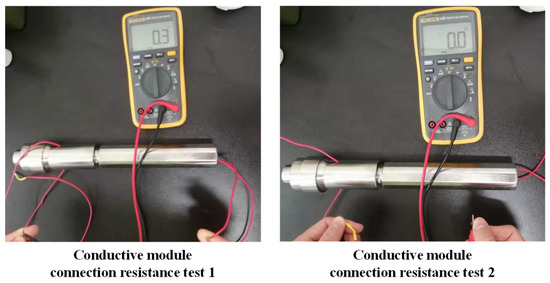 The resistance of the connected conductive center pole was measured using a multimeter, as shown in Figure 22.