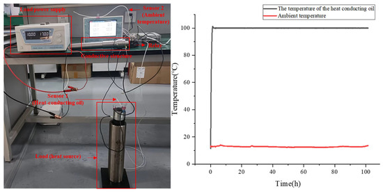 The oven was used to simulate an in situ high-temperature environment of 150 °C to verify the working performance of the conductive center pole in a high-temperature environment. The conductive center pole was placed in a high-temperature oven, and the rest of the connected electronic components were placed outside the oven to ensure normal operation. The principle of the experimental system is shown in Figure 25.