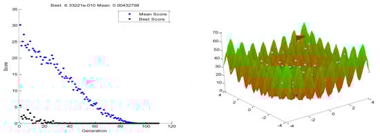 Based on the above classical multi-objective test function analysis, we used the same test function, such as Rastriginsfcn, and different hybrid PSO algorithms. The experimental results of the same test function are described in Figure 36, Figure 37, Figure 38, Figure 39 and Figure 40 as follows.