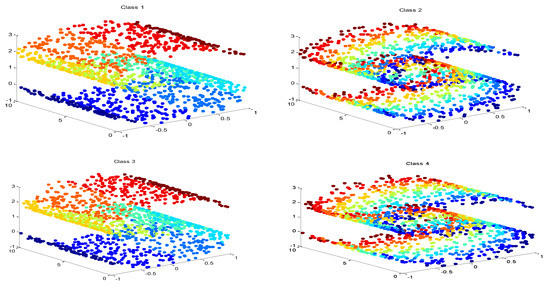Multi-dimensional data refers to a data set composed of a large number of samples with multi-dimensional attributes. Concurrently, the multi-dimensional cloud model is a cloud model generated according to various characteristics of data to establish an integrated cloud. Furthermore, the system can be evaluated by calculating the similarity between the multi-dimensional cloud model composed of new data and the integrated cloud. As a result, the multi-dimensional cloud model can effectively solve the problem of low clustering accuracy caused by the fuzziness and uncertainty of multi-sample, multi-dimensional data. In the meantime, the simulation results of the multi-dimensional cloud model can be represented in Figure 2 as follows.
