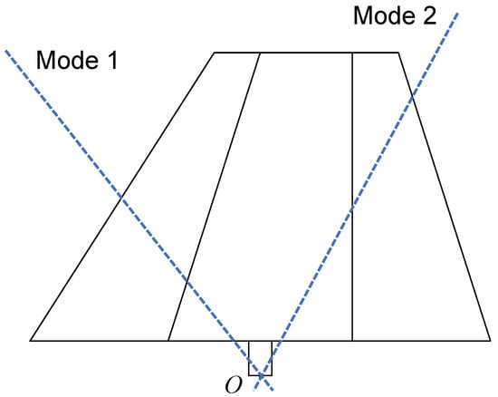 A typical small aspect ratio all-movable fin is studied in this paper; a diagram of this is shown in Figure 2, and the relevant parameters are shown in Table 1. Unless otherwise specified, , , the integration time step is s, and the initial conditions of the time-domain integration are set to . The air density and Mach are and , respectively. The mode shapes are shown in Figure 3, and the linear flutter results obtained using the root-locus method are shown in Table 2.