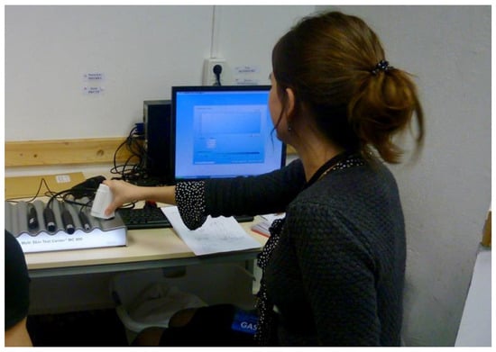 The skin analysis was carried out by the Multi Skin Test Center MC 900 and the software Complete Skin Investigation CSI from Courage + Khazaka electronic GmbH (Cologne, Germany). The parameters “moisture”, “oil level”, and “TEWL” were recorded in the “individual measurement” programme. The classification and evaluation of the results were conducted with the reference values provided by the manufacturer, and had been determined on the basis of scientific studies. These values were conducted under the following room conditions: room temperature of 20 °C and humidity of 40–60% []. After each measurement was taken, the probes were cleaned and disinfected with a soft cloth as recommended by the manufacturer.