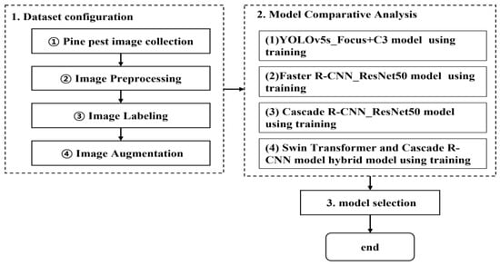 Figure 2 shows the development process for pine pest detection. The description of each item is as follows.