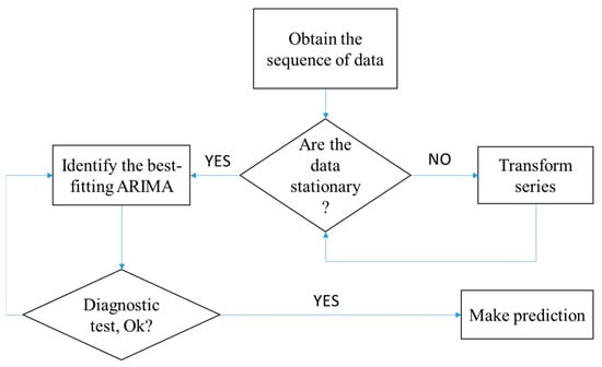 Flowchart of the autoregressive integrated moving average (ARIMA) model [].