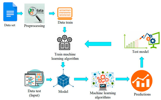 Machine learning is a technique or method for predicting what data will come next by following a set procedure [,,,]. Figure 3 shows the working steps for the machine learning predictive (MLP) model. The basic steps of the model are as follows: learning the overall picture of machine learning, learning the individual methods, learning how to evaluate the predictions, and trying to use machine learning for specific tasks. The machine learning method in this study employed the support vector machine (SVM). The SVM [,,,,] is a two-class classification machine learning method with supervised learning. Supervised learning is a type of machine learning method in which the machine is given a problem with an associated answer and learns them by adjusting the parameters in the program so that the answer calculated by the program is similar to the prepared answer.