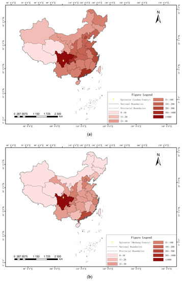 - Examining the statistical results regarding the number of microblogs, microblog users paid high attention to the three earthquakes and published and retweeted a lot of information related to them. People published the most microblogs about and paid the highest attention to the Luding earthquake, followed by the Lushan earthquake, while the lowest in the Maerkang earthquake. The number of aftershocks, the severity of secondary disasters and the scope of social influence will all lead to an increase in the number of microblogs and an increase in attention; otherwise, the number of microblogs will show a decreasing trend. In the spatial characteristics, the people’s attention is not only closely related to the areas where earthquakes occur and historical disasters are frequent, but also influenced by labor migration, the coastal areas are also in the forefront of attention, and the three earthquake microblogging areas are mainly concentrated in Sichuan, Guangdong and Jiangsu and Zhejiang.