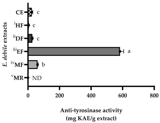 Anti-tyrosinase and anti-5α-reductase activities of E. debile extracts.