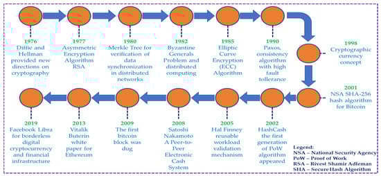 In the following Figure 3, the key milestones achieved from the mid-seventies up to 2019 are illustrated. This serves as an indication of the importance of cryptography as well as the development of algorithms and frameworks for the improvement of security in data transmission for digital transactions.