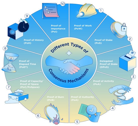 - Consensus Mechanisms in Blockchain: A Beginner’s Guide. Crypto.com. Available online: https://crypto.com/university/consensus-mechanisms-in-blockchain (accessed on 20 November 2022).