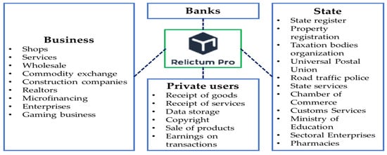 Considering the discussion of the previous section, the past blockchain generation provided various benefits by exploiting key digital technologies. During the last decades and through the various blockchain eras discussed earlier, it has become evident that research efforts are focused on key aspects, such as the cost efficiency of this technology as well as the speed of transaction execution/completion measured in terms of data rate. In the last few years, energy efficiency has been among the top requirements since cryptocurrency mining has formed a growing global community with companies creating miner farms. Such miner farms, in pursuit of awards, solve complex cryptographic puzzles, which require tremendous computational power and time. To put this in perspective, the Bitcoin community consumes approximately one hundred and fifty terawatt-hours of electrical power annually, which exceeds the power consumption of an entire country with a forty-five million population. In addition, carbon dioxide emissions (CO2) are estimated to be sixty-five megatons annually [24,25,26]. However, the fifth era of blockchain also focuses on matters such as scalability, economic reliability, security, transparency, and confidentiality. The economic reliability and stability of such ecosystems create disbelief in companies towards the integration of blockchain in their business operations model [27,28]. The first commercial implementation of Blockchain 5.0, to the best of our knowledge, is Relictum Pro [29] (Figure 9). The key concept of Relictum Pro is the creation of a network that supports the setup of multiple smart contracts for the execution of transactions, which is expected to outperform competitor solutions in terms of security.