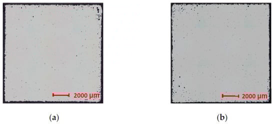 The following series of samples were used to detect porosity changes at different heights in bulk samples. For the production, the parameter set from Table 2 sample 4-1 was used because, in the previous experiment, it led to lower porosity. After production, the individual samples were cut and metallographically prepared for the observation of porosity with a light microscope. Image analysis was used to evaluate the relative surface density of the samples in the XY planes at different sample heights (Figure 2d). An overview of the measured values can be found in Table 5. The marking of the samples corresponds to Figure 3a. Larger spherical pores at all height levels are observed in the subsurface area of the samples. The regular arrangement of pores in the subsurface area is usually the result of a local increase in energy at the end of the individual hatching vectors, which is caused by the deceleration at the end of the vector and the acceleration at the beginning of the neighboring vector (turnaround point), which can be removed with the use of so-called skywriting in newer scanning units [24]. Only very small gas pores of about 10 μm size are observed in the volume of the sample, as shown in Figure 8. A specific or significantly different pore arrangement in the individual height levels was not observed.