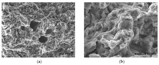 Local pores (Figure 11a) and hints of cleavage facets (Figure 11b) were observed on the fracture surface of sample 7-1, which exhibited fine dimple morphology. The morphological features of the fracture surface indicate a low-energy ductile fracture. Similar results are obtained by Liu et al. [26] for the alloy AZ61.