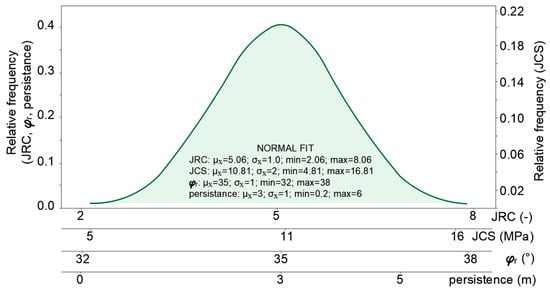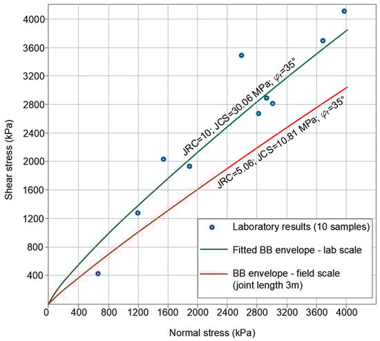 - Barton, N.; Bandis, S. Effects of block size on the the shear behaviour of jointed rock. In Proceedings of the 23rd U.S Symposium on Rock Mechanics (USRMS), Berkeley, CA, USA, 25–27 August 1982; pp. 739–760. [Google Scholar]