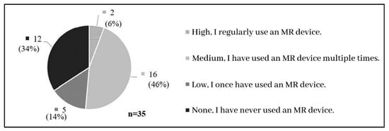 The sample consisted of 35 participants (18 male, 17 female) from 11 different nationalities (16 participants from Germany). Ages ranged between 17 and 38 years old (Mage = 26.68, SDage = 4.25). When asking respondents about their general level of experience with MR devices, approximately half of the sample group (52%) had used an MR device multiple times before or used them regularly. Figure 9 shows the distribution of MR experience among the sample group.