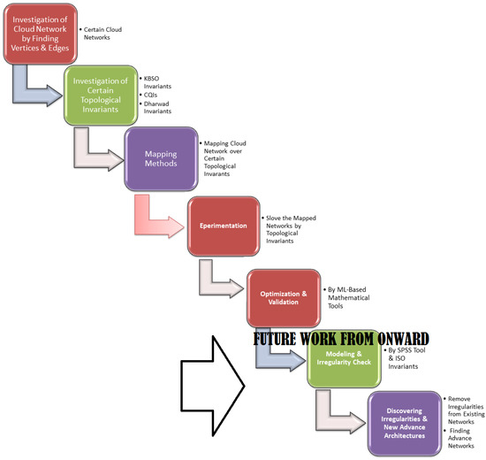 In answer to the expected contribution, the study provides the mathematical results for the modeling of the cloud networks, developed the model in the Methodology section, and provided the graphical predicted results and the lower and upper bounds of the cloud graph. Equations (7)–(12) are the mathematical solutions of the cloud networks, with the help of topological invariants and graphical and mathematical results, providing the guidelines for the network engineers and architectural engineers during the modeling of the cloud network and all other networks in which the cloud network is used, and also during actual constructions of these networks.