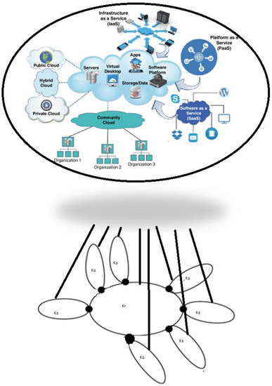Figure 3 shows a cloud computing network in which different clouds are involved, from which the extraction of the cloud graph is carried out. A bigger centralized cloud is represented by ‘Kr’ and a smaller cloud attached to a bigger one is represented by ‘Ks’.