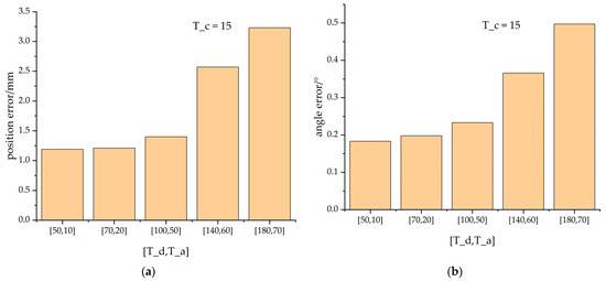 The pose errors resulting from different thresholds: (a) position error; (b) angle error.