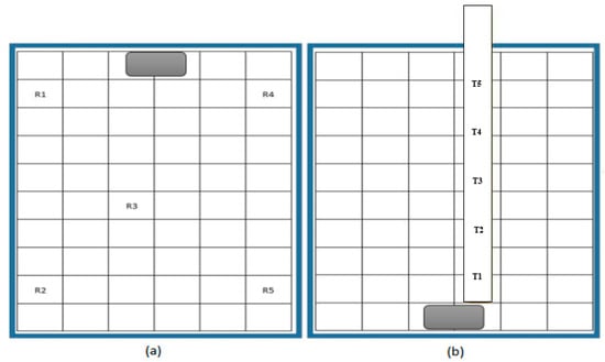 The distribution of the thermocouples that were used to measure the temperature of the cooled and reference PV panels. (a) Reference panel without heat pipe (b) panel with heat pipe.