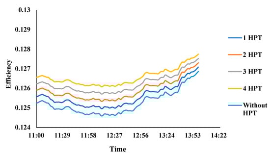 Panel temperature efficiency variation with time for different number of heat pipes.