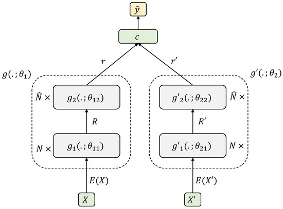where the weight matrices of the multi-head attention mechanism (Equations (11) and (12)) are defined for the document level as , , and , and additionally, are shared among the two branches; , , and .
