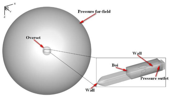 Figure 6 shows the setting of transient boundary conditions. The pressure far-field boundary is used for the far-field, and the free-flow parameters are given according to the atmospheric conditions at 5 km altitude, = 0.7; the outlet of the inlet adopts the pressure outlet boundary condition, and the pressure is set to the corresponding pressure when = 0.4; the interface between dynamic and static domains is set as the overset boundary condition; the body and inlet adopt non-slip adiabatic wall boundary.