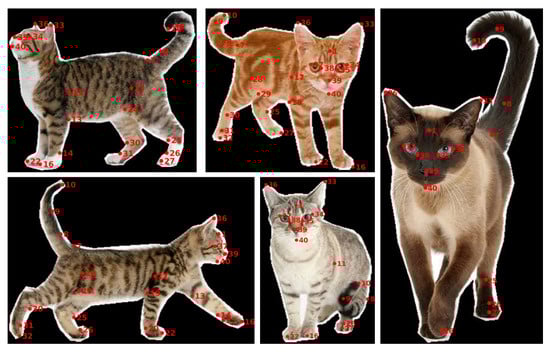 Examples in the proposed dataset Cat. Each red point marks a key point. The number represents the index of the key point, as shown in Table 1.