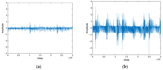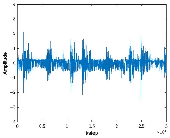 The incipient shock of the rolling bearing is weak, the contact interface damage is small, the shock force generated by the interaction of the components is not large, and the vibration amplitudes and the characteristic information are not obvious and weak. Due to the constraints of the space structure, the bearing is usually not directly measured, and data can only be obtained indirectly through the sensor installed on the equipment bearing seat or in an external housing. The fault impulse response will be attenuated in the mediating parts between the bearing and the sensor. In addition, it is difficult to avoid the interference of component vibration and sensor circuit conversion noise during the operation of the equipment. Therefore, the signal-to-noise ratio of the final picked-up signal is usually low, and the proportion of the relevant component of the fault in the signal is small [4,5]. In addition, the rolling elements may slide relative to each other or sway due to uneven force. Therefore, the interval between fault shocks is not strictly consistent. Additionally, when the bearing speed is too high, some rolling elements will fly by before the collision fault point, resulting in the loss of fault shock. Many of the above factors have presented great obstacles to the identification of faults of bearings. Therefore, seeking an effective and reliable method for extracting weak fault features has always been a prominent and difficult point in engineering application research. At the same time, it has important practical significance for the monitoring and forecasting of the equipment’s status and for later equipment maintenance [6,7].