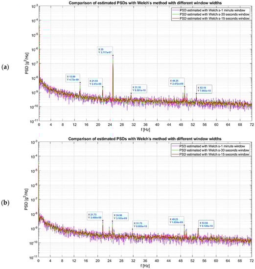 A few preventive operations, such as the application of appropriate windows to the raw signal to avoid the leakage phenomenon, need to be performed on the raw signal before applying Welch’s method [,,,,,].