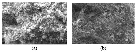 The soil samples before and after the porous clay plate test were taken, dried and then subjected to the scanning electron microscope test. After being magnified 500 times, the soil microstructure under the action of matric suction of 0 and 1000 kPa was obtained, as shown in Figure 8. It can be seen that the pores of soil particles were filled with fine particles after the matric suction of 1000 kPa, and the particles were closely arranged. It shows that the soil particles have undergone seepage deformation. Under the action of seepage pressure, the hydraulic gradient increases to a certain value, and the soil particles migrate in the pores, thus changing the soil microstructure.