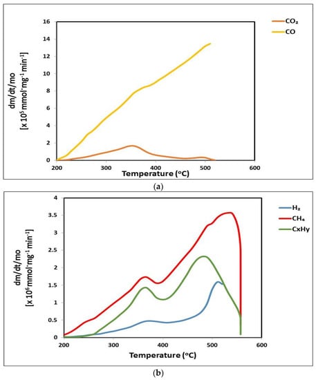 - Tian, B.; Wang, X.; Zhao, W.; Xu, L.; Bai, L. Pyrolysis behaviors, kinetics and gaseous product evolutions of two typical biomass wastes. Catal. Today 2021, 374, 77–85. [Google Scholar] [CrossRef]