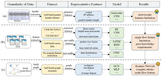 Depending on the granularity of the studied data, current attack identification methods are mainly classified into packet-based identification methods, flow-based identification methods, and graph-based identification methods.