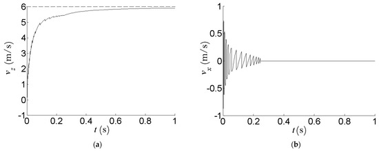 Figure 7a shows that the axial velocity of the fuel element under the action of pneumatic force increases rapidly from 0 to 5.1 m/s in 0.2 s, then increases slowly until it is close to the lifting gas-flow velocity ( is indicated by the dashed line in the figure, taking 6 m/s as an example). According to the kinetic model, the winding velocity of gas (the difference between and ) is larger in 0–0.2 s, so the pneumatic thrust is larger and the axial acceleration of the fuel element (the slope of ) is large. Its collision with the inner wall of the pipe leads to the instantaneous reduction of the axial velocity (reflected as the zigzag step of the curve), the collision-recovery coefficient (about 0.8) prompts the collision to gradually weaken, and finally and only have a small velocity difference caused by the rolling friction of the fuel element.