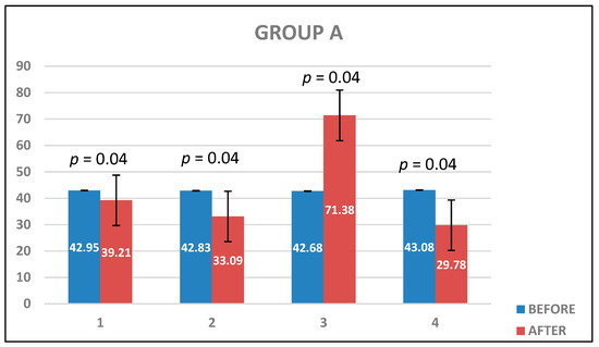 Changes in ∆E values in group A.