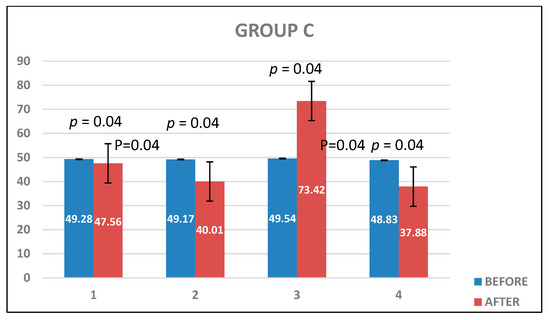 Changes in ∆E values in group C.