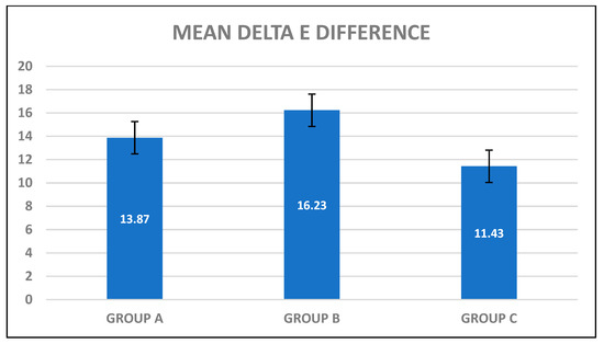 Changes in ∆E values in group B.