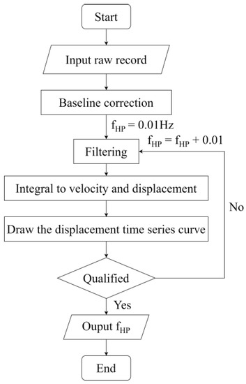 The procession of the traditional method to determine the high-pass cut-off frequency of strong-motion records is shown in Figure 1, which consists of four crucial steps, as follows: